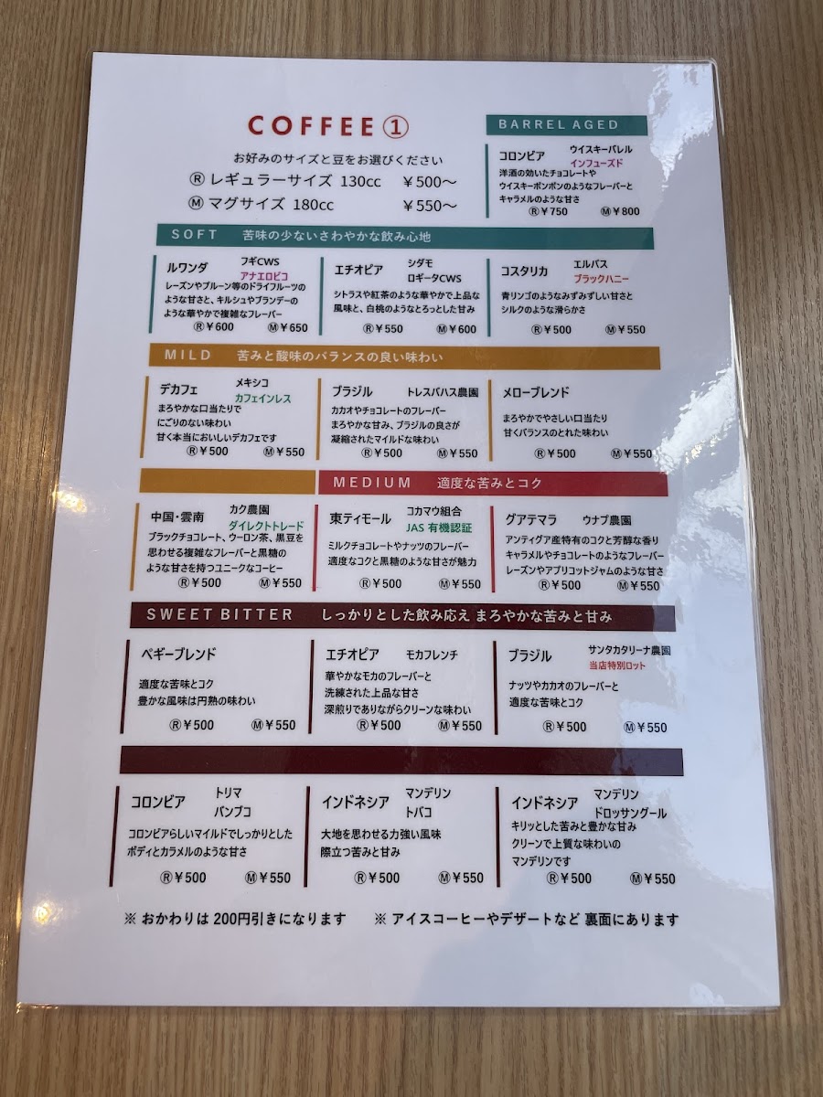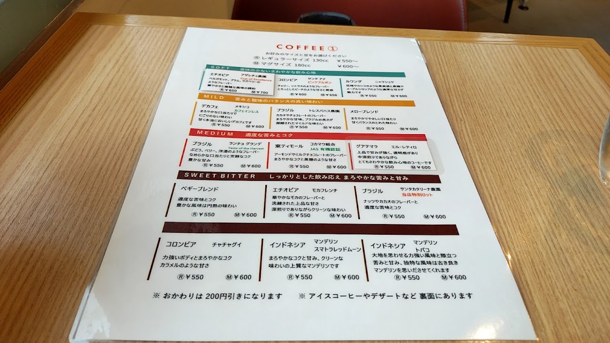Coffee-kan - Keyaki Walk Maebashi Menu